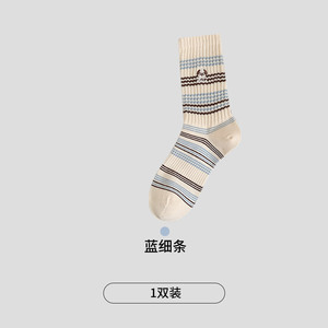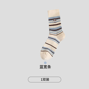 CHEEMY FREE秋冬新款博学狗条纹中筒女袜可爱卡通秋冬保暖百搭袜