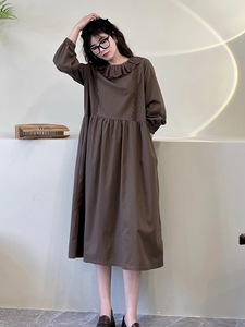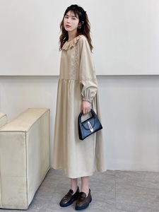 2025秋季新款 文艺复古简约蕾丝镂空拼接领休闲连衣裙批发潮