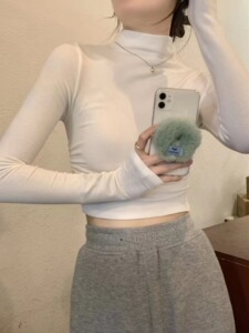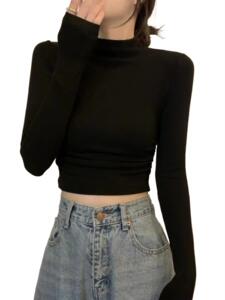 辣妹短款露脐纯欲上衣女秋修身内搭打底衫德绒半高领长袖T恤