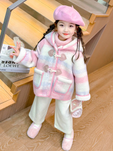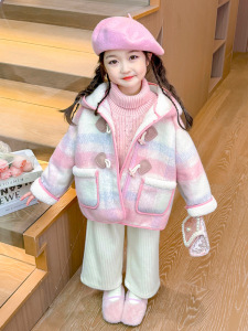 女小童外套秋冬款2025新款洋气时髦女宝宝加厚冬装儿童装格子大衣