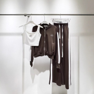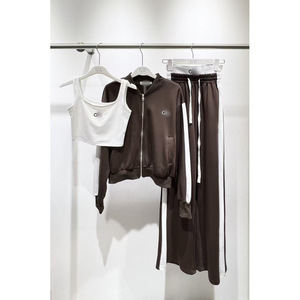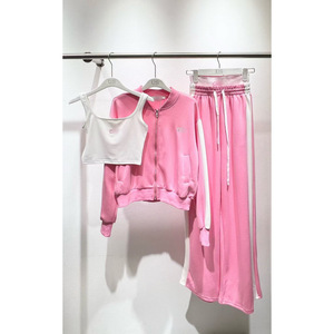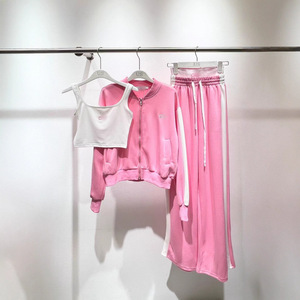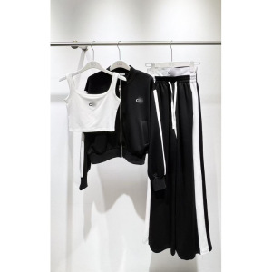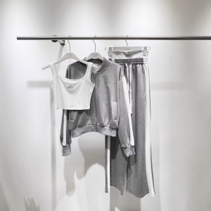 A25秋冬新款辣妹休闲短款U领背心长袖外套双裤腰休闲裤