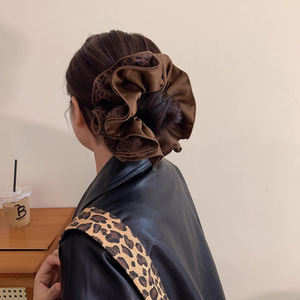 豹纹缎面大肠发圈~四层超大号高级感丸子头发绳马尾扎头发头绳女