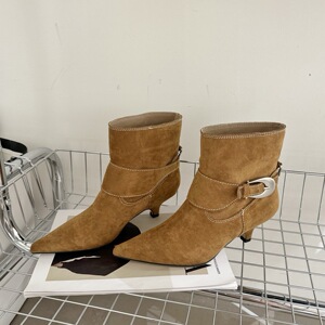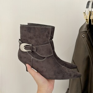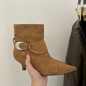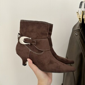 尖头细跟美拉德时装靴女2025秋冬新款皮带扣低跟踝靴复古切尔西靴