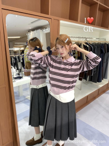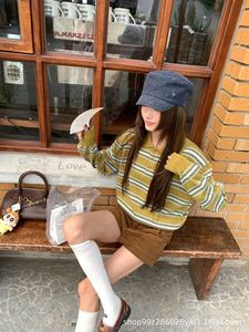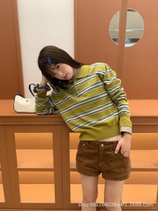南油品质25SS秋冬新款小众复古双色拼色条纹POLO针织衫ins博主款