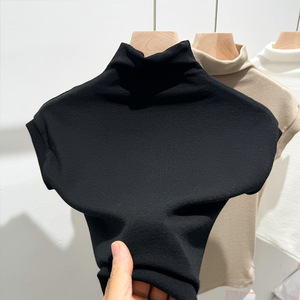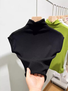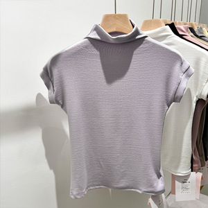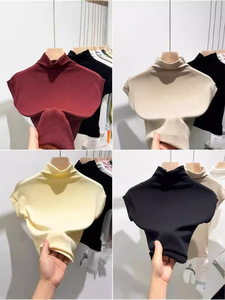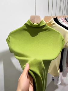 设计感纯欲半高领短袖T恤女弹力莫代尔棉修身春秋内搭打底衫上衣