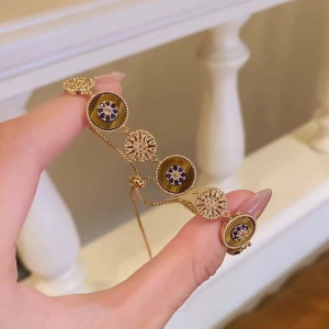 法式复古八芒星圆盘手链女高级感时尚显白虎眼石气质百搭精致手链