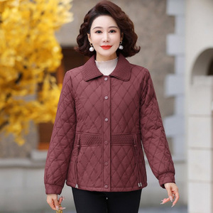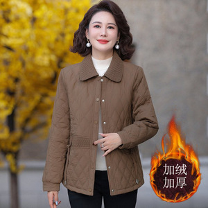 时尚妈妈翻领加绒棉服外套秋冬新款洋气高贵轻薄棉衣中老年上衣女