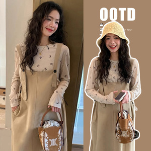 孕妇装秋装2025春秋套装软糯时尚上衣背带裙套装孕妈高级感穿搭