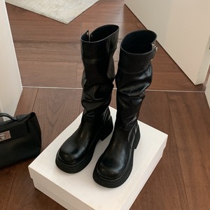 Y圆头厚底粗跟按扣骑士靴