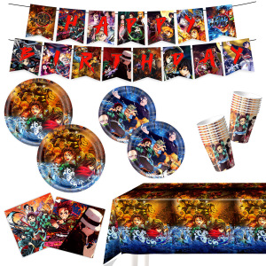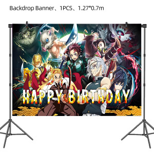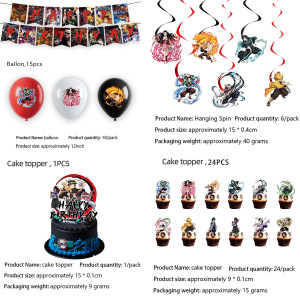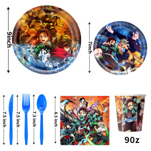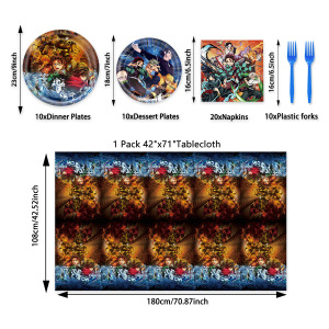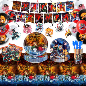 亚马逊鬼灭之刃主题生日派对餐具纸盘纸巾桌布蛋糕插排套装装饰品