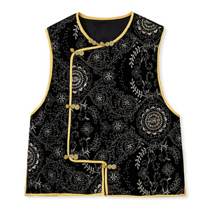 秋季新款高端新中式设计背心女国风重工钉珠刺绣盘扣马甲 N9021