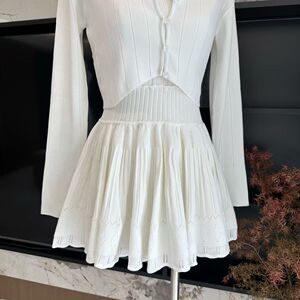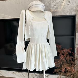 2025夏季新款韩系白针织开衫上衣收腰甜辣妹吊带短裙子两件套女