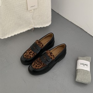 2025年秋季新款圆头低跟单鞋女鞋豹纹拼色复古乐福鞋英伦风小皮鞋