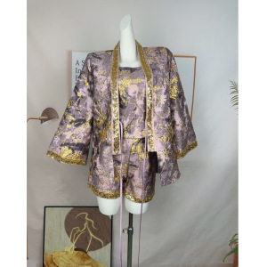 新中式国风套装女秋高级感立体浮雕绣花上衣外套缎面半身裙三件套