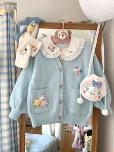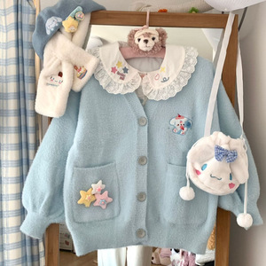 春秋季新款日系毛茸茸针织可爱刺绣毛衣开衫外套小个子针织上衣潮