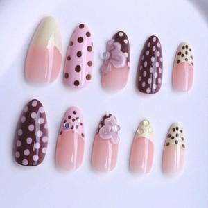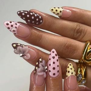 成品穿戴甲甲片杏仁型滴胶3D立体花朵穿戴式美甲专用短款指甲贴片