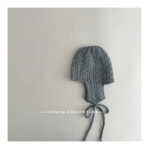 韩版儿童针织帽麻花纹理冬季保暖护耳帽男女童百搭绑带毛线套头帽