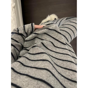 韩系条纹设计感德绒睡衣女款秋冬季加厚家居服套装可外穿跨境批发
