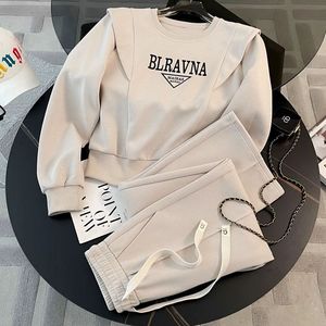 欧洲站休闲运动服套装女春秋新款小个子减龄卫衣阔腿裤显瘦两件套