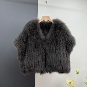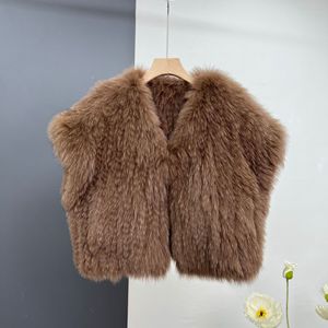 吾凰真毛皮草外套狐狸毛马甲女短款飞飞袖坎肩双面编织加密加厚