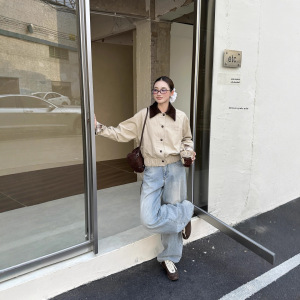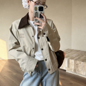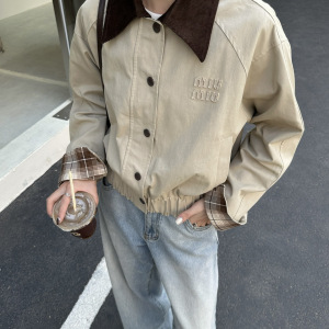 mm夹克外套巴恩风翻领拼色夹克复古又时髦女25早秋9月新品短外套
