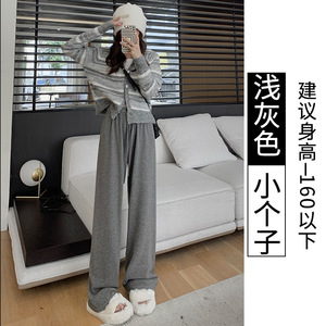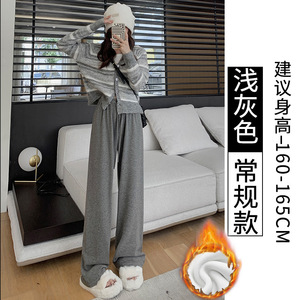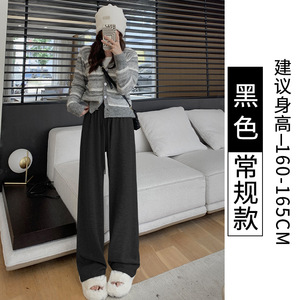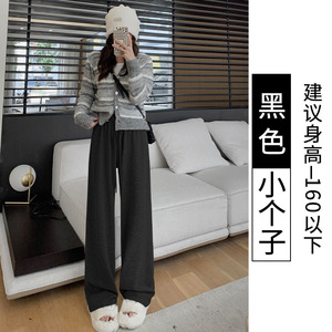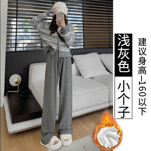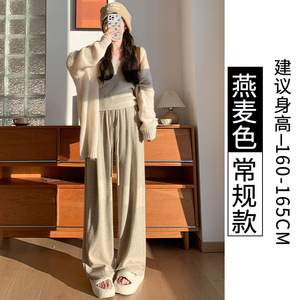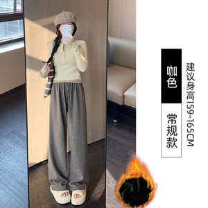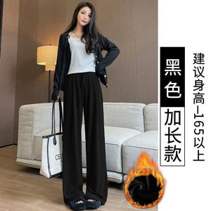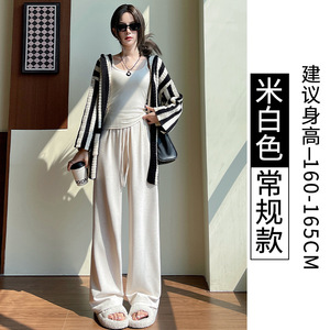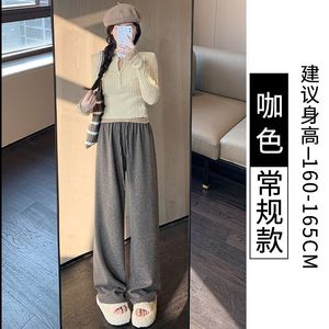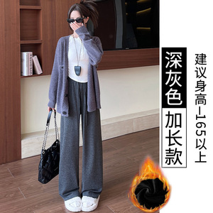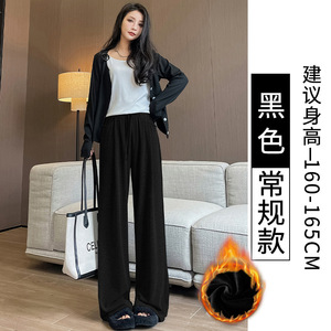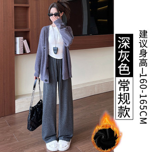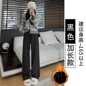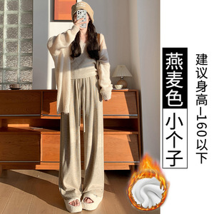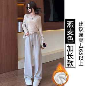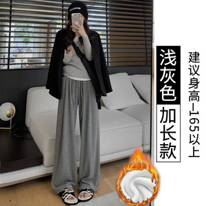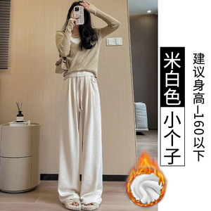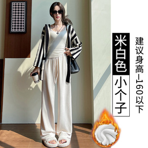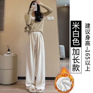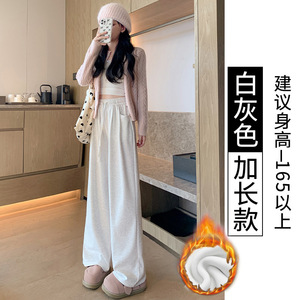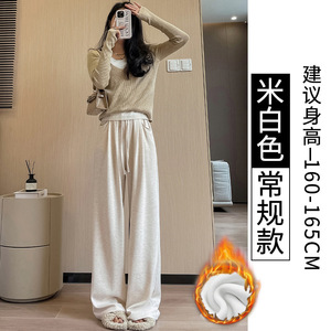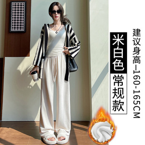 米白色糯米裤女加绒2025新款高腰垂感小个子慵懒风秋冬宽松阔腿裤