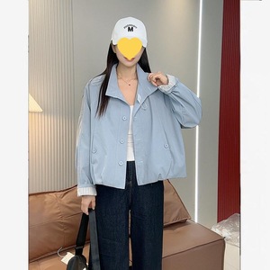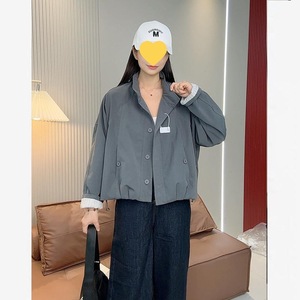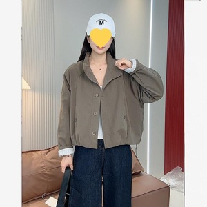 巨好看早秋韩系立领工装外套女秋季港风休闲流行夹克上衣米白色