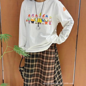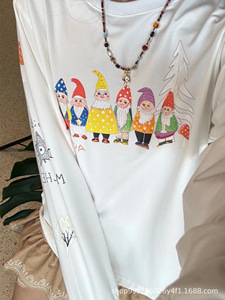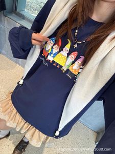 南油品质2025秋冬新款字母刺绣手绘印花七个小矮人圆领卫衣女上衣