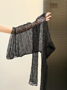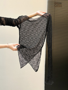 2025新款蕾丝镂空罩衫女不规则镂空设计感高级长袖打底衫内搭上衣