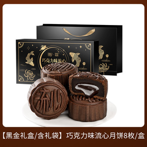 烫金礼盒送礼袋【共8枚】巧克力味流心月饼8枚装