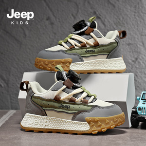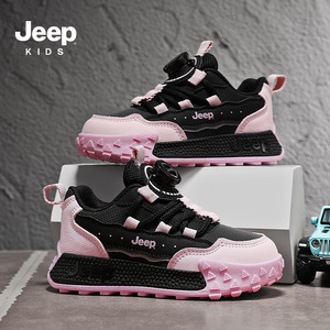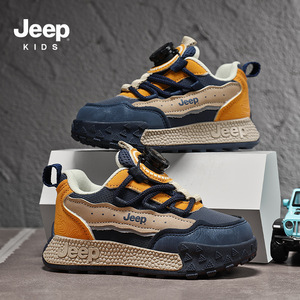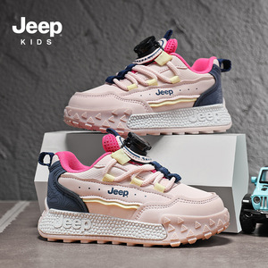 Jeep童鞋2025秋季新款防水皮面男童运动鞋旋转纽扣女童跑步鞋潮牌
