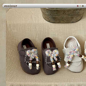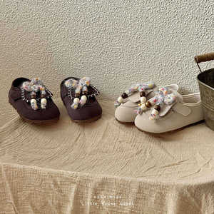 XSHX中古串珠|女童小皮鞋魔术贴秋橡胶底魔术贴翻鞋舌复古皮鞋