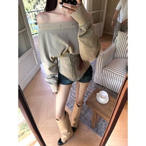 黑有染 miekevv 沙漏腰封 一字肩绑带收腰卫衣宽松设计感拼接上衣