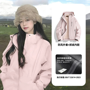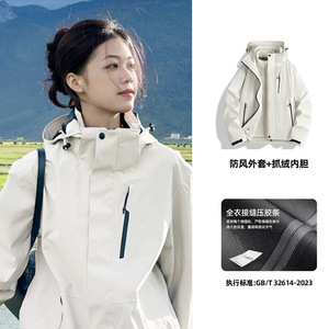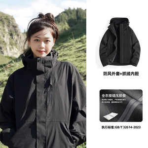 骆陀同款冲锋衣女户外防风防水三合一两件套男国标小个子登山服25
