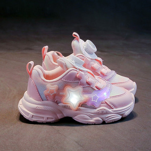 儿童鞋2025秋冬秋女童发光亮灯旋转纽扣老爹鞋小女孩跑步鞋卡通图