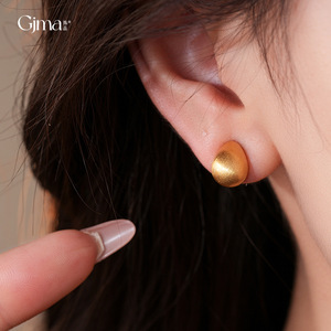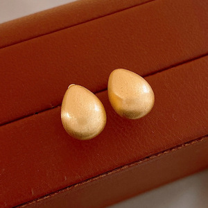 真金电镀拉丝水滴豆豆耳环轻奢高级感耳钉时尚简约百搭耳饰女批发