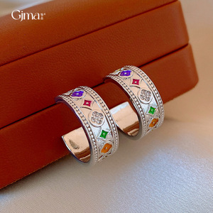 银针欧美跨境锆石几何圆形花朵耳环轻奢高级感耳钉个性复古耳饰女