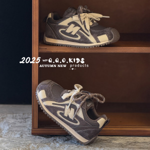 QQO童鞋 2025秋冬新款儿童复古双鞋带运动鞋时尚潮流男女童跑步鞋