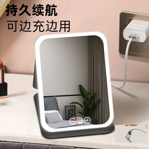 led化妆镜便携镜子可折叠带灯梳妆镜台式桌面补光宿舍办公室镜子