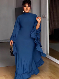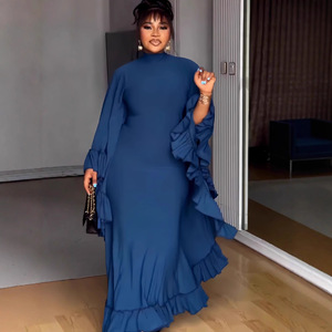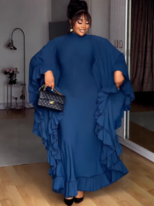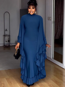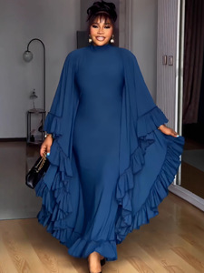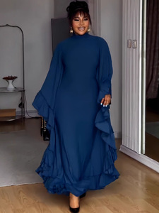 2025秋季新款欧美跨境亚马逊跨境女装设计款宽松荷叶边纯色连衣裙