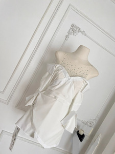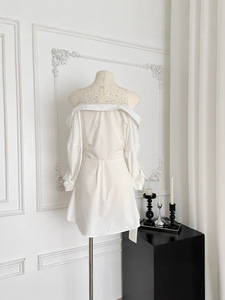 『欣幸』2025秋季新款假两件露肩烫钻连衣裙衬衣小众气质纯欲款