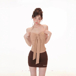 辣妹波点2025蝴蝶结抹胸背心女夏季新款套装长袖罩衫上衣两件套潮