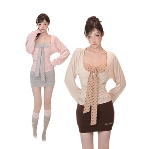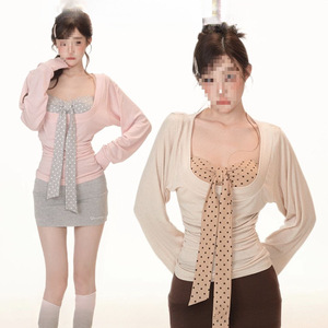辣妹波点2025蝴蝶结抹胸背心女夏季新款套装长袖罩衫上衣