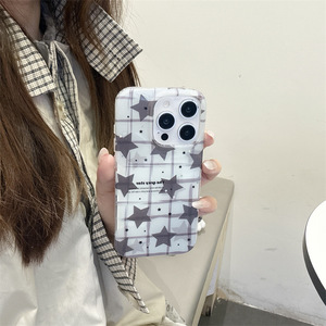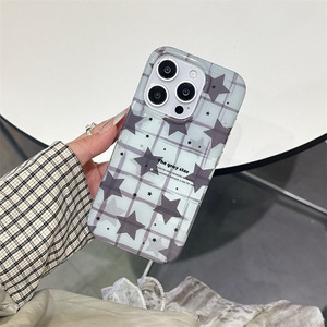 日韩ins细闪格纹星星适用iPhone17苹果16ProMax/15手机壳14新款女