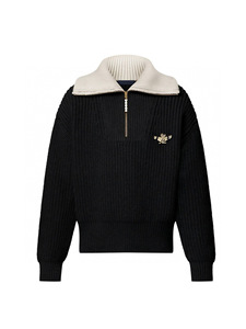 正确版 驴家25FW秋冬新款珍珠飞行员胸针翻领半拉链毛衣 厂家直出