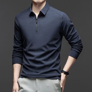 【含桑蚕丝+绵羊毛】男士长袖POLO衫2025秋季新款简约日常T恤