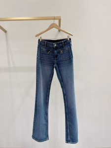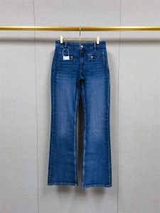 法式小众2025秋冬拉链口袋装饰高腰显瘦喇叭牛仔长裤