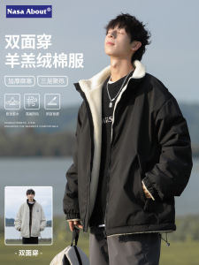 NASA羊羔绒双面穿棉外套男士秋冬季2025新款加厚保暖立领棉服外套