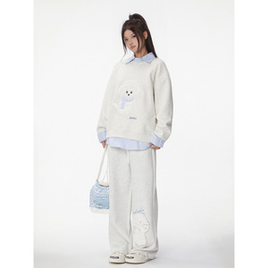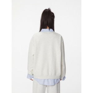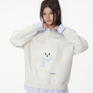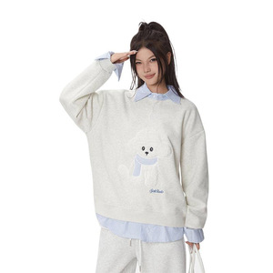 刺绣小狗拼接衬衫假两件卫衣女秋冬加绒宽松无帽上衣设计感小众潮