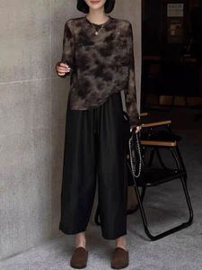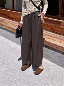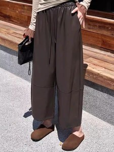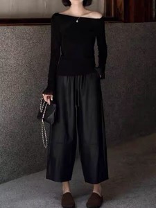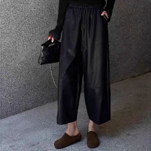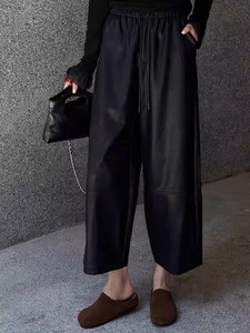 高端25秋冬新高腰简约松紧腰蛋白皮宽松百搭休闲直筒女士九分皮裤